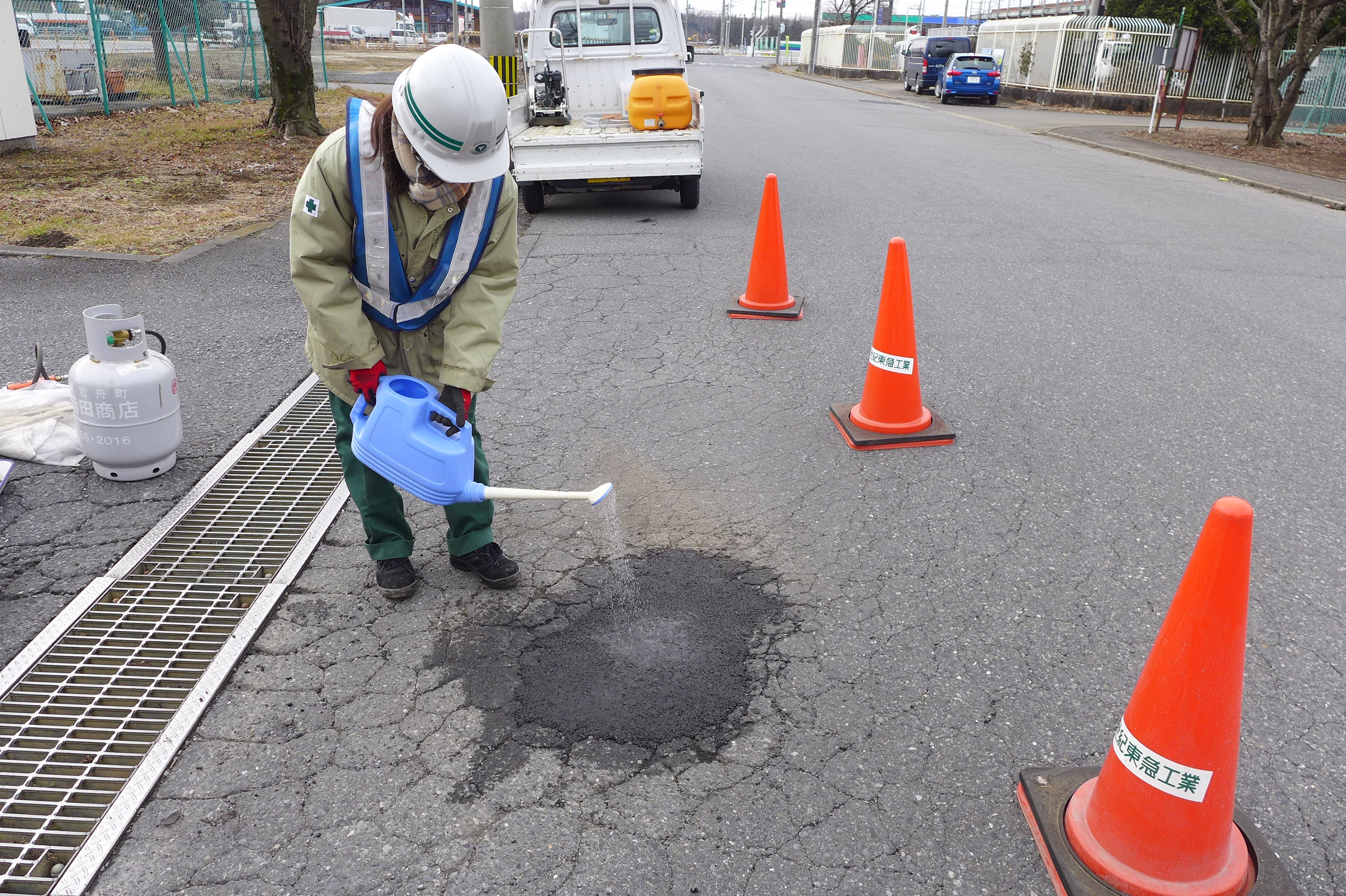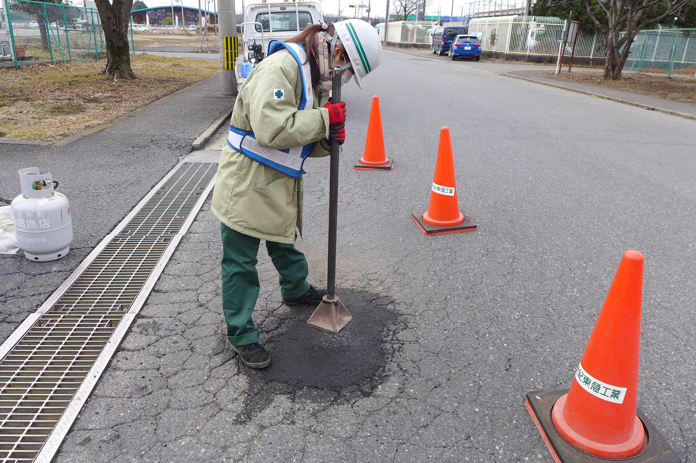 - アスファルト舗装のポットホール補修